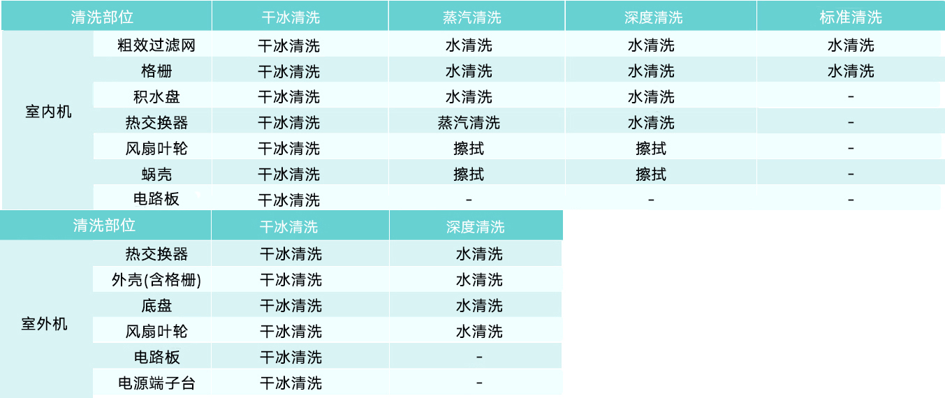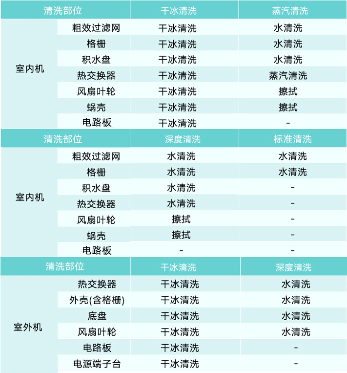 ※具体清洗部位视现场情况可能会存在不同。外机清洗视现场安装情况另行商议是否清洗。